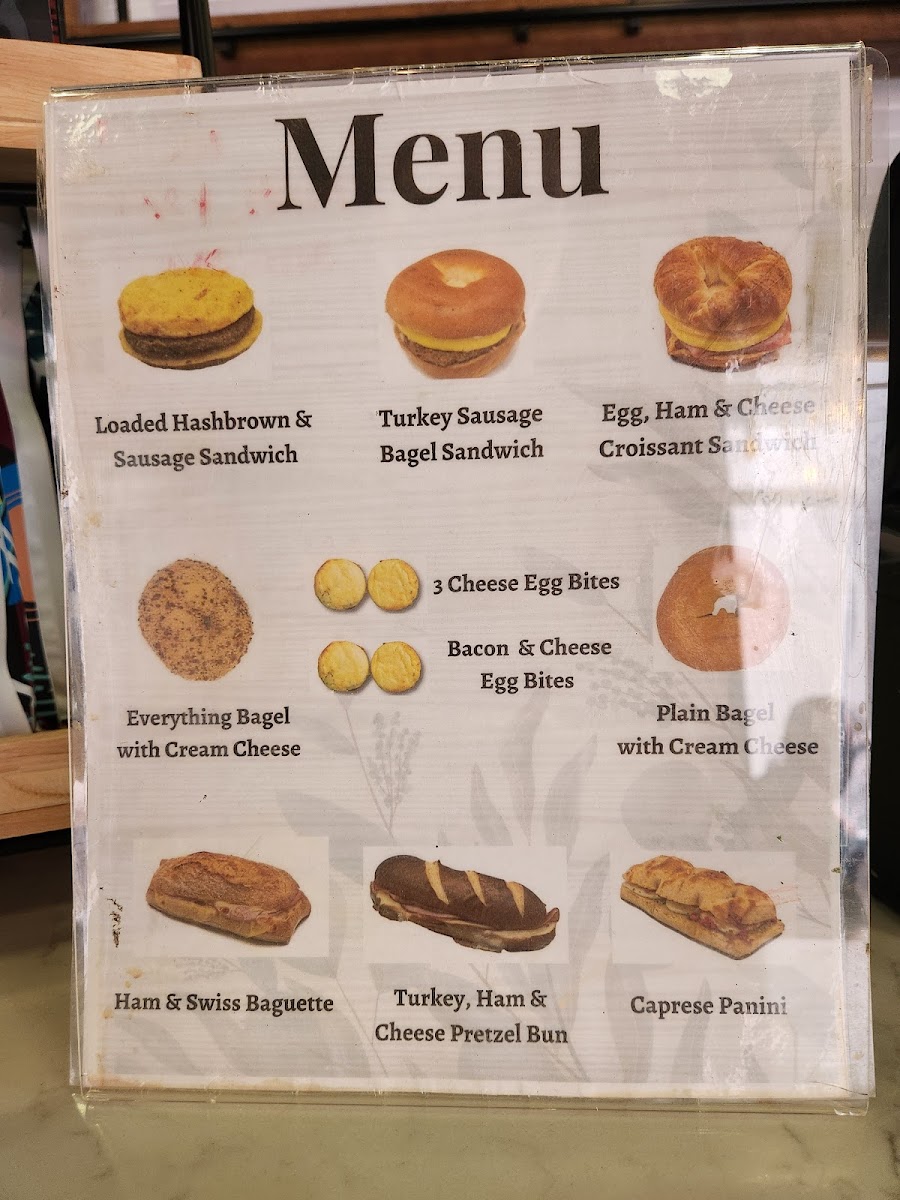 Egg, turkey sausage, and pepper jack cheese on bagel.